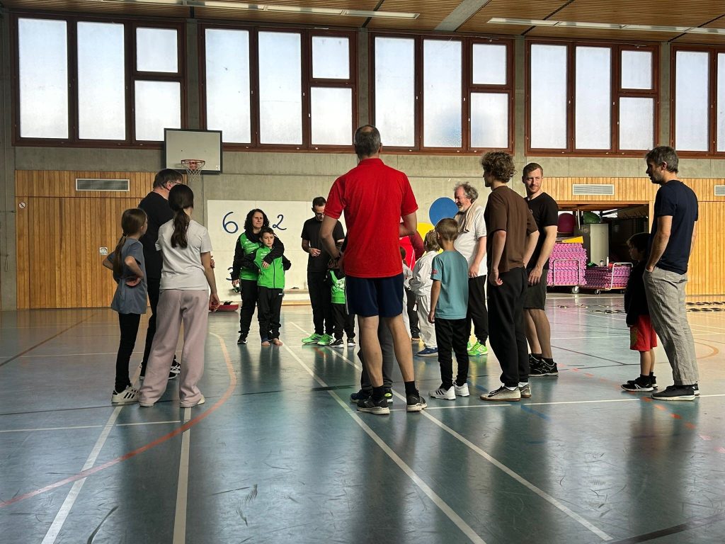 Nach einer kurzen Begrüßung und Einführung starteten die Teilnehmenden mit einem gemeinsamen Aufwärmen in den sportlichen Nachmittag. Schnell entwickelte sich eine lockere und motivierende Atmosphäre, in der sich Eltern und Kinder gleichermaßen aktiv einbringen konnten.