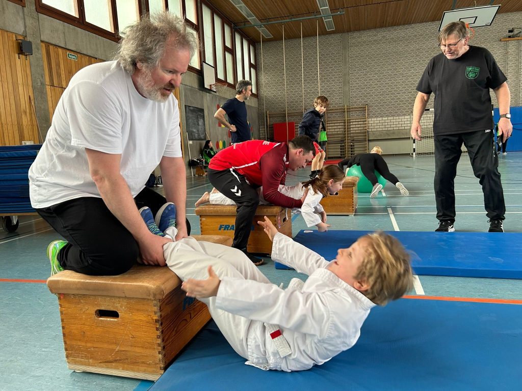 Ein Höhepunkt des Programms war das abwechslungsreiche Eltern-Kind-Zirkeltraining. An mehreren Stationen wurden spielerisch Koordination, Beweglichkeit und Teamarbeit gefördert. Die Übungen ermöglichten es den Eltern, selbst einen Einblick in das Karate-Training ihrer Kinder zu erhalten und gemeinsam sportliche Herausforderungen zu meistern.